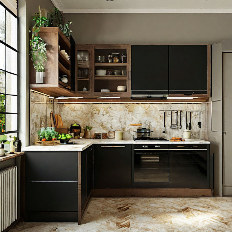 На этом же этапе определите – нужна ли вам угловая кухня или нет? Как правило, такие проекты стоят дороже. А если у вас действительно «ограниченный» бюджет: подумайте может быть возможно верхний ярус заменить на полки? Это позволит вам существенно сократить смету и упростить процесс сборки.